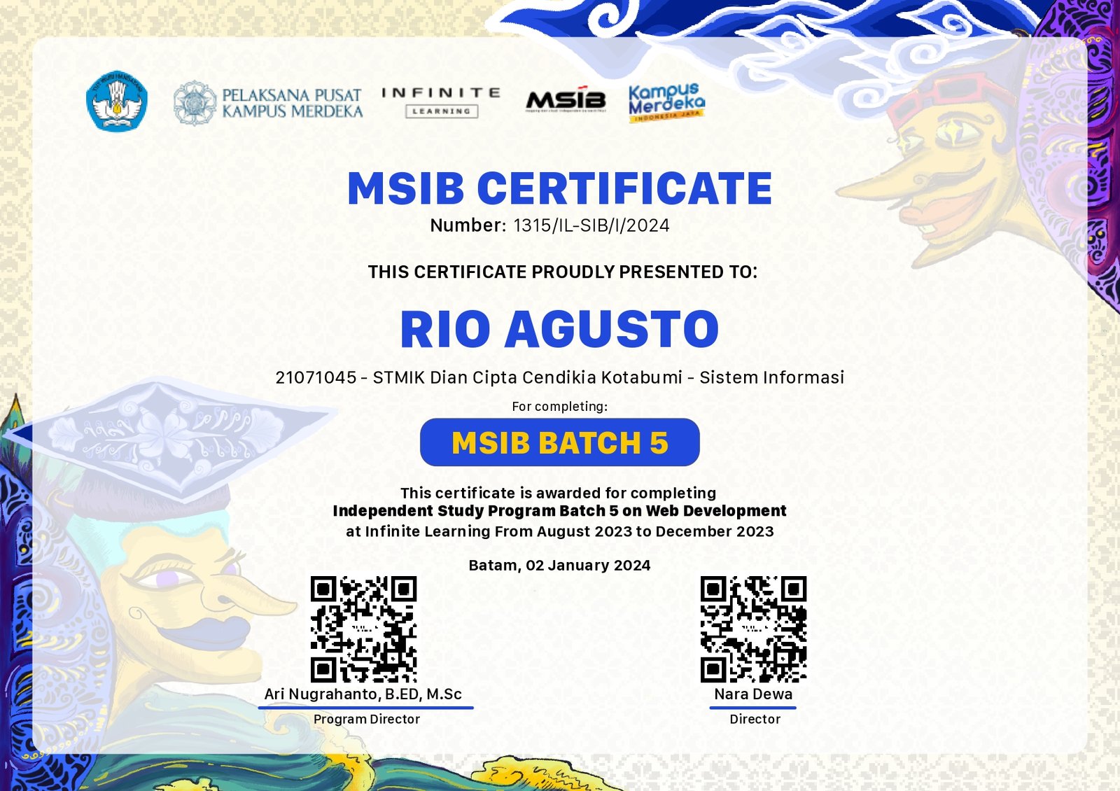 Information Systems student from the Dian Cipta Cendikia Institute of Business Technology and Languages ​​with experience professionals in the field of front-end developers and back-end developers. Have skills in web development, work on designs according to UI/UX designs accurately. Able to work in a team and adapt to the environment quickly. Currently there is a desire to develop the capabilities of front-end developers and back-end developers through internship opportunities in a professional environment.
